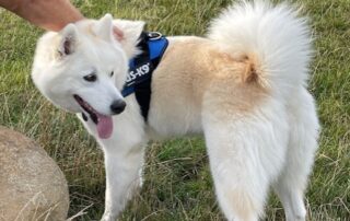 Hi, it’s Amelia, Little Ember update: Ember has settled in so well, claiming the main bed and snoring louder than anyone. She’s made lots of doggy friends and has her own McDonald’s order (chicken nuggets). Her little squishy face makes everyone who meets her happy!