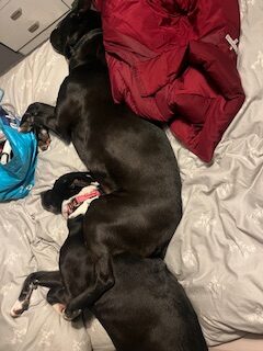 Just wanted to send a few pics from nala and simbas first week in their new home. Theyve settled so well already and have been so well behaved. Unfortunately ive been ill for most of their first week so weve not been able to do much but theyve loved snuggling up together on the bed and have been so loving. They love to explore new places round the village on their walks and are already walking much better on the leads. We have a bit of a challenge when we see other dogs still but they are learning quick. Since theyd been so well behaved we treated them to a trip to the beach in wales yesterday which they seemed to absolutely love although nala wasnt very impressed with the sea.